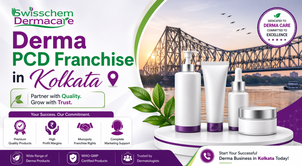 Kolkata is renowned as the perfect location for a Derma PCD Pharma Franchise because this city is a city between tradition and a fast modernizing healthcare industry. Though this is a saturated market, you need to use the right partner that can provide you with the right combination of innovativeness, monopoly rights, and technical support to grow your business. Swisschem Dermacare is devoted to becoming that partner to you. We are equipped to guide you to take down the booming derma market of the city of joy, with our science-supported formulations and unquestionable support of our franchisees.